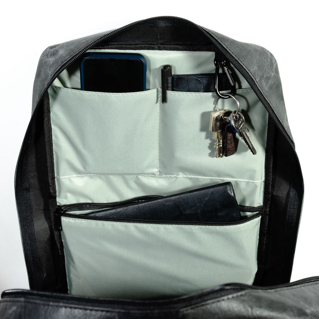 - Organisations-Wunder: Innen warten 2 Steckfächer, 1 Schlüsselhaken und ein großes Zipp-Fach (A5) für Kabel und Kleinkram auf dich.